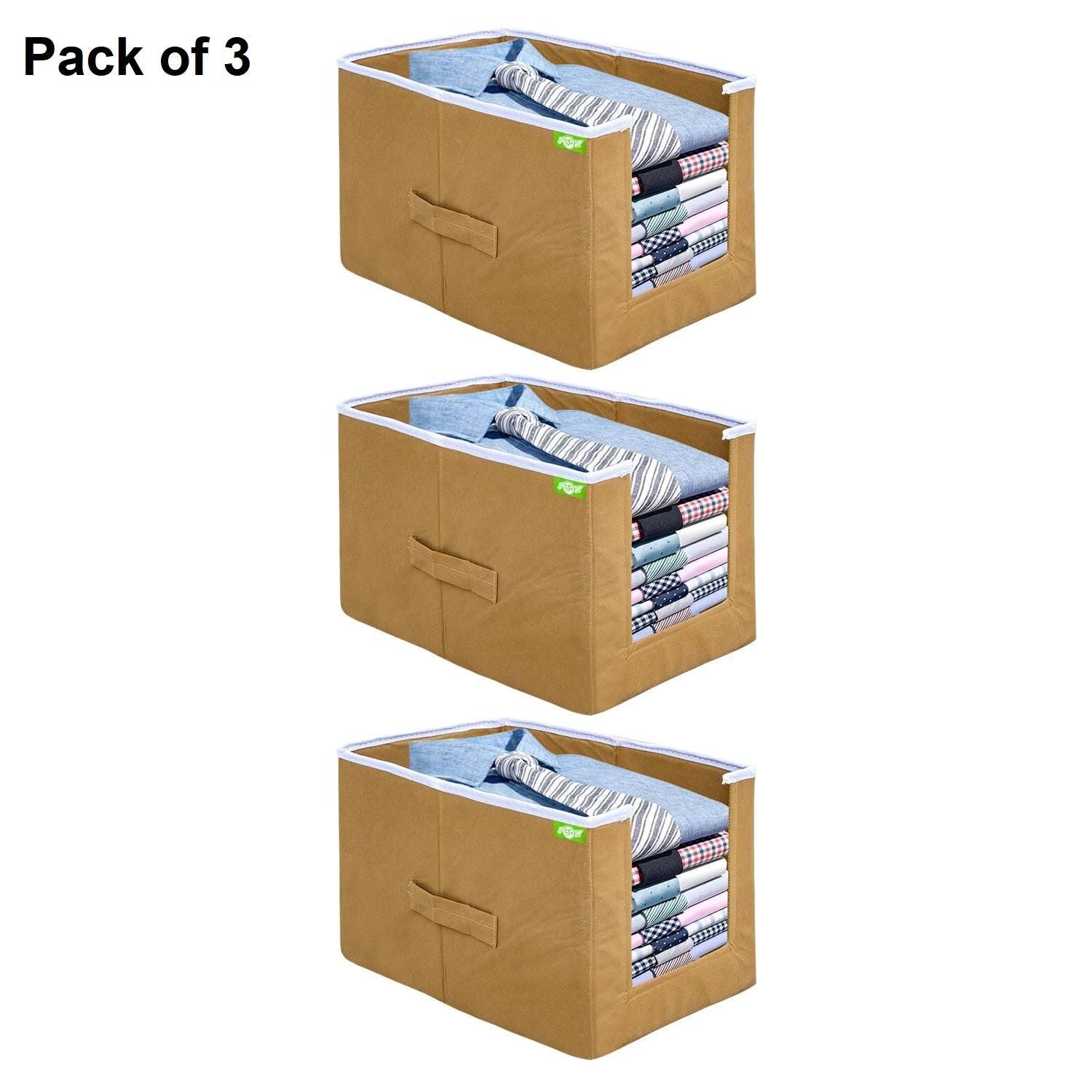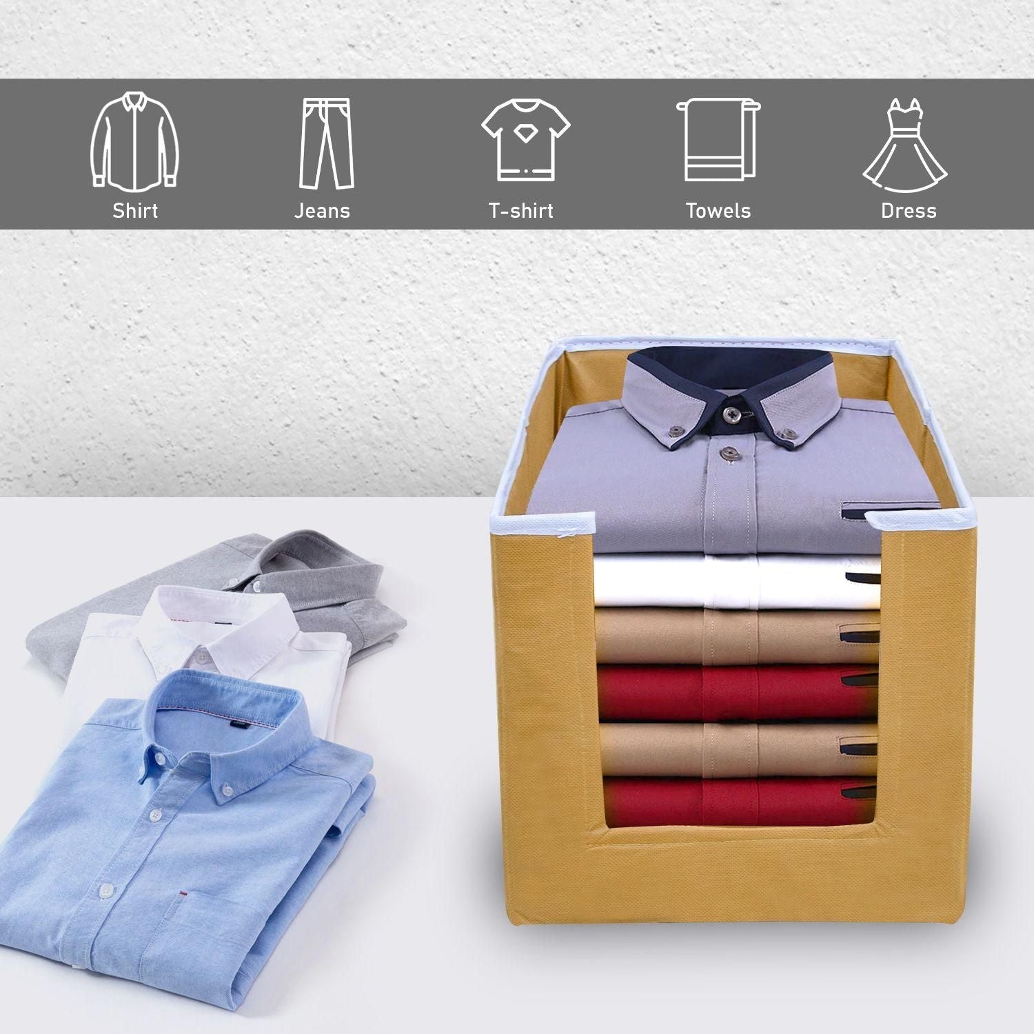 Stacker -Clothes Organizer For wardrobe (Pack of 3) Package Contains: It Has 3 Piece Of Shirt Stacker Product Dimension(L x B x H in cm):-40 x 26 x 10 cm Material: Non Woven Color: Beige Combo/Set Of: Pack of 3 Weight: 450