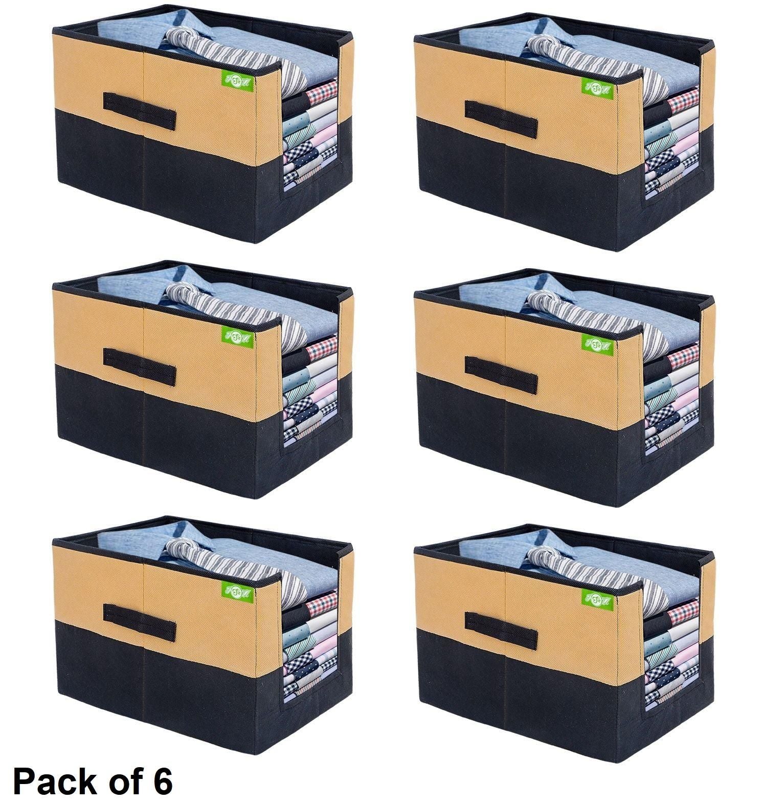 Product Name: Shirt Stacker -Clothes Organizer For wardrobe (Pack of 6) Package Contains: It Has 6 Piece Of Shirt Stacker Product Dimension(L x B x H in cm):-40 x 26 x 10 cm Material: Non Woven Color: Beige & Black Combo/Set Of: Pack of 6 Weight: 690